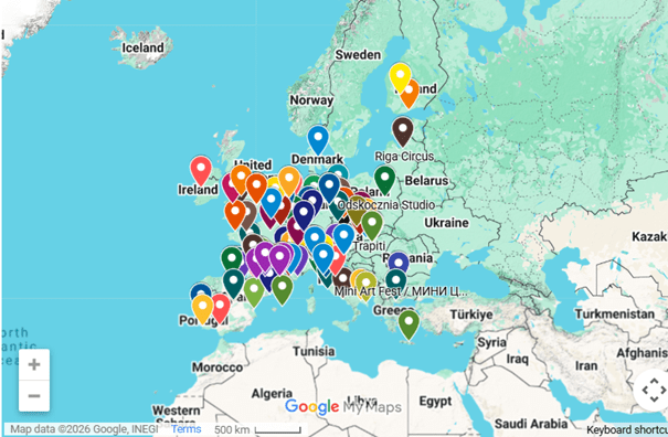 ➡️ Une carte interactive recensant les organisations de cirque qui proposent des activités adaptées aux jeunes en situation de handicap à travers l’Europe.